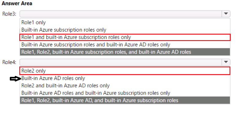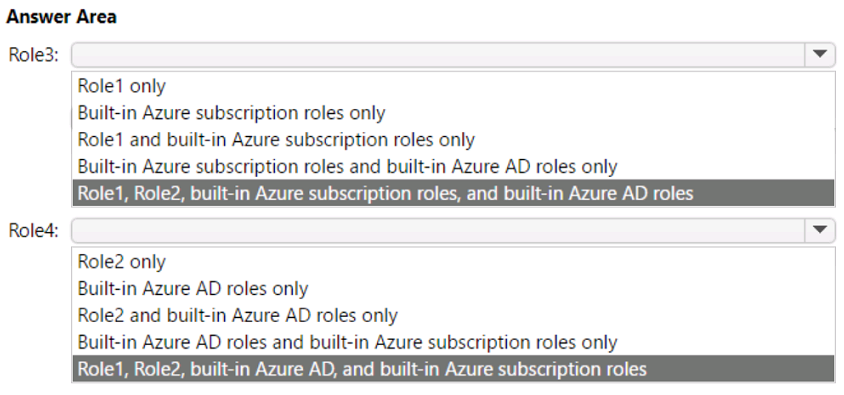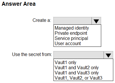 - 您有一个名为 Sub1 的 Azure 订阅,其中包含两个名为 User1 和 User2 的用户。 您需要为 User1 和 User2 分配基于角色的访问控制 (RBAC) 角色。这些用户必须能够在 Sub1 中执行以下任务: • User1 必须查看任意存储帐户中的数据。 • User2 必须为用户分配存储帐户的贡献者角色。 解决方案必须使用最小特权原则。 您应该为每个用户分配哪个 RBAC 角色?要回答这个问题,请将相应的角色拖到正确的用户。每个角色可以使用一次、多次或根本不使用。您可能需要拖动窗格之间的分隔条或滚动查看内容。 注意:每个正确选择值一分。你有一个 Azure 订阅,其中包含 10 台虚拟机、一个名为 Vault1 的密钥保管库和一个名为 NSG1 的网络安全组 (NSG)。所有资源都部署到美国东部 Azure 区域。