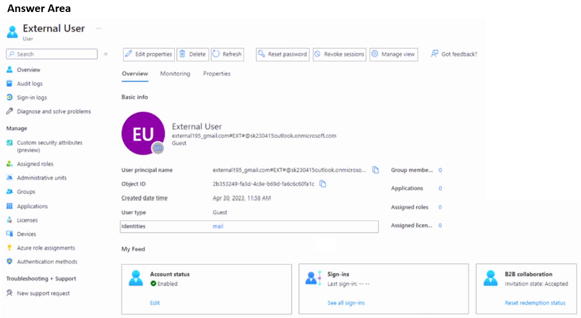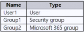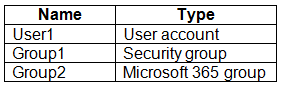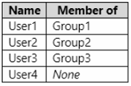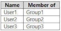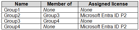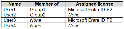 - 您有一个 Microsoft Entra 租户,其中包含下表所示的用户。热点 -