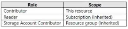 您需要确保名为 Group1 的组的成员可以使用 Azure 门户上传文件。解决方案必须使用最小权限原则。 您应该为 Storage1 配置哪两个角色?每个正确答案都代表了解决方案的一部分。 注意:每个正确选择值一分。热点 -
