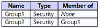 您有一个 Microsoft Entra 租户,其中包含下表所示的组。您有一个 Azure 订阅,其中包含下表所示的资源。