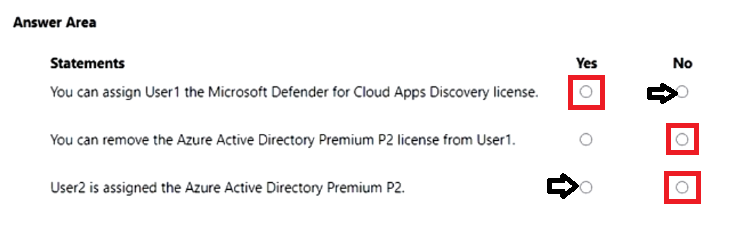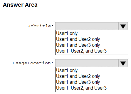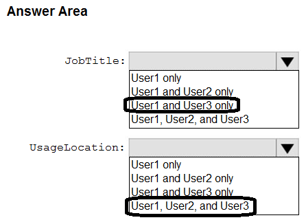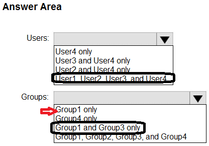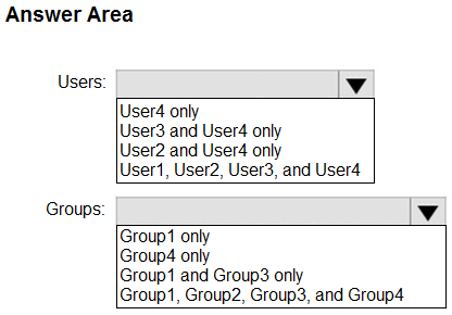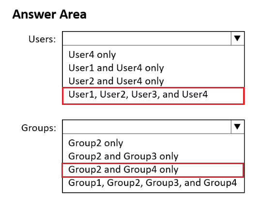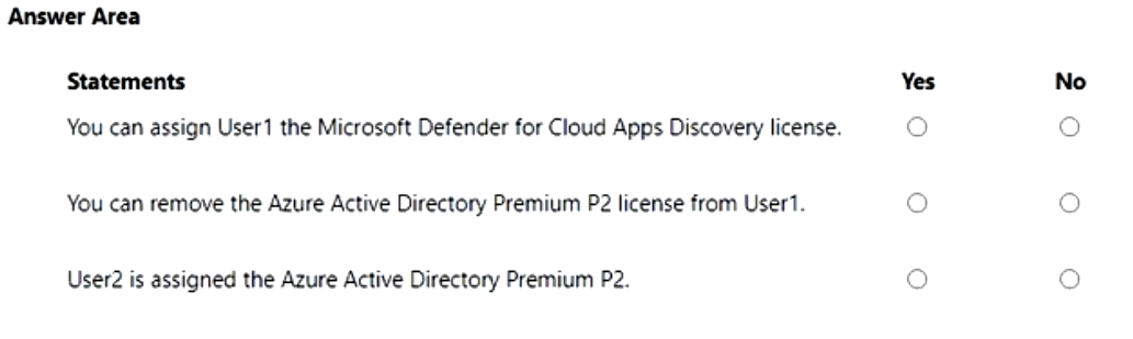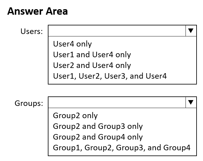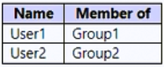 - 您有一个 Azure Active Directory (Azure AD) 混合部署,其中包含下表中显示的用户。注意:本题是一系列呈现相同场景的题目之一。该系列题目中的每个题目都包含一个可能符合既定目标的独特答案。有些题目集可能包含多个正确答案,而有些题目集可能没有正确答案。