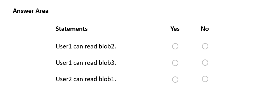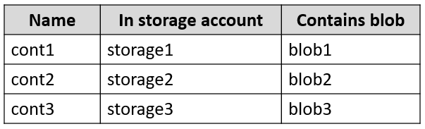 您有一个名为 Sub1 的 Azure 订阅,其中包含下表所示的 Blob 容器。注意:本题是一系列呈现相同场景的题目之一。该系列题目中的每个题目都包含一个可能符合既定目标的独特答案。有些题目集可能包含多个正确答案,而有些题目集可能没有正确答案。