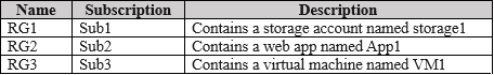 您有一个名为 Subscription1 的 Azure 订阅,其中包含下表所示的资源。您有一个名为 Subscription1 的 Azure 订阅。