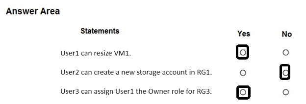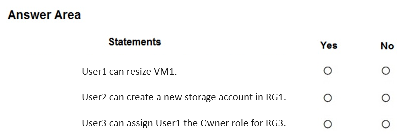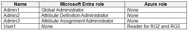 - 您有一个 Azure 订阅,其中包含下表所示的用户。你有一个名为“Subscription1”的 Azure 订阅,其中包含一个名为“VNet1”的虚拟网络。VNet1 位于名为“RG1”的资源组中。