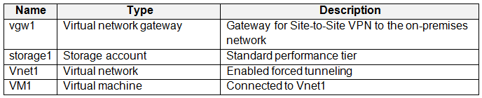 您有一个 Azure 订阅,其中包含下表所示的资源。您的本地网络包含 VPN 网关。