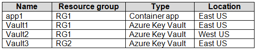 您有一个 Azure 订阅,其中包含下表所示的资源。您有一个 Microsoft Entra 租户。