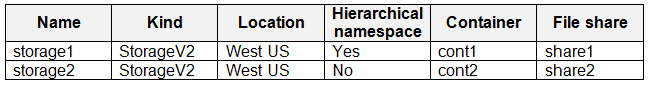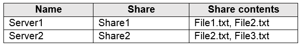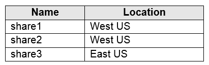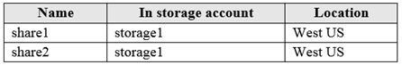 您有一个 Azure 订阅,其中包含下表中显示的文件共享。热点 -