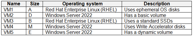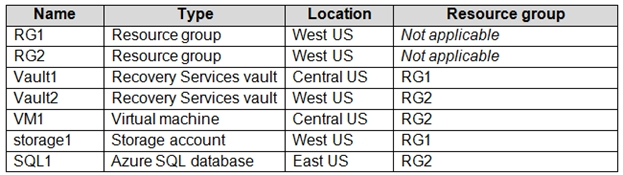 VM2 备份到 RSV1。 您需要将 VM2 备份到 RSV2。 您首先应该做什么?您有一个名为 storage1 的通用 v1 Azure 存储帐户,该帐户使用本地冗余存储 (LRS)。