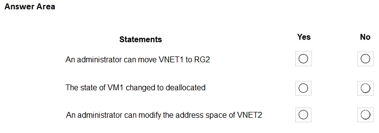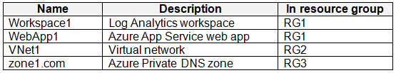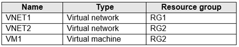 - 您有一个 Azure 订阅,其中包含名为 User1 的用户和下表所示的资源。你有一个名为“Subscription1”的 Azure 订阅,其中包含一个名为“VNet1”的虚拟网络。VNet1 位于名为“RG1”的资源组中。