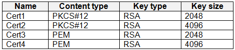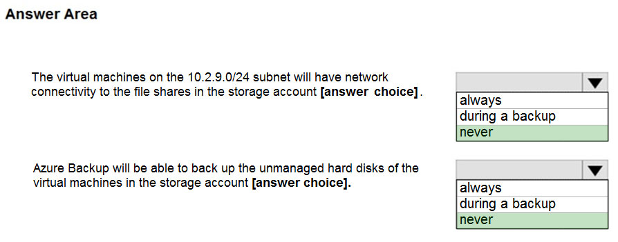 在准备驱动器进行导入作业之前,您应该创建哪两个文件?每个正确答案都代表了解决方案的一部分。 注意:每个正确选择值一分。您有一个用于测试备份的恢复服务保管库。测试备份包含两个受保护的虚拟机。