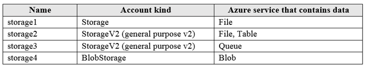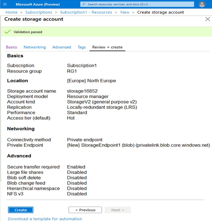 您有一个 Azure 订阅。 您创建如下图所示的 Azure 存储帐户。您有一个名为 storage1 的 Azure 存储帐户。