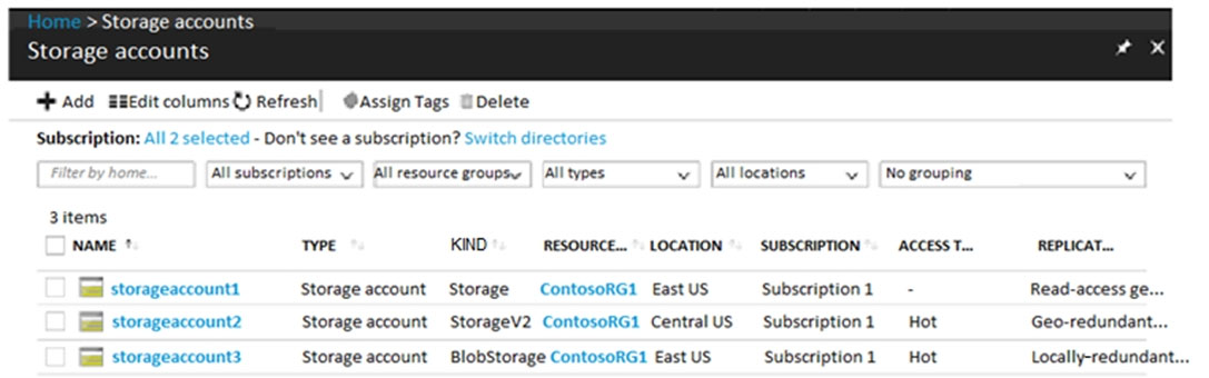 您有一个 Azure 订阅,其中包含下图所示的存储帐户。热点 -