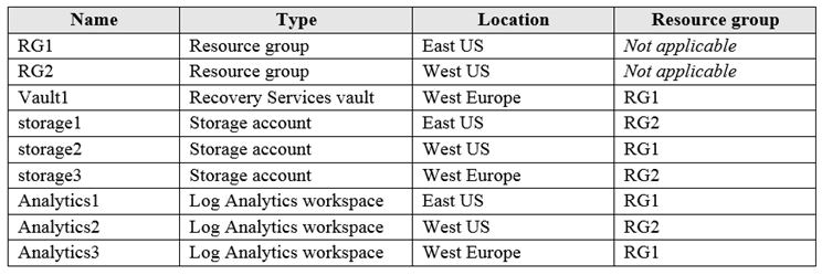 您有一个 Azure 订阅,其中包含下表所示的资源。热点