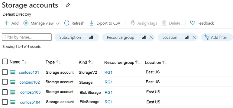 您拥有 Azure 存储帐户,如下图所示。您拥有包含以下位置的数据的 Azure 订阅: