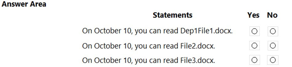 您计划执行批量用户导入。 您需要确保导入的用户对象根据每个用户的部门自动添加为特定组的成员。该解决方案必须最大限度地减少管理工作量。 您应该执行哪两个操作?每个正确答案都代表了解决方案的一部分。 注意:每个正确选择值一分。您有一个 Azure 订阅,其中包含一个名为 storage1 的存储帐户。